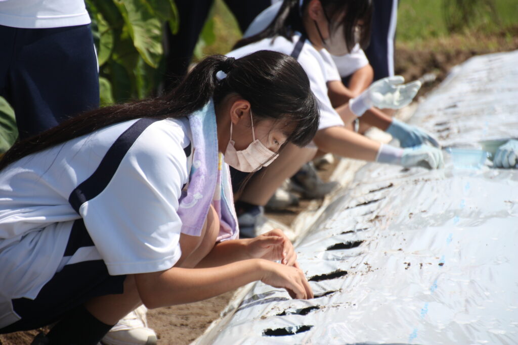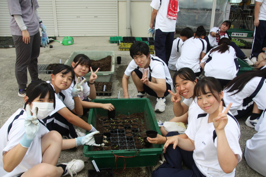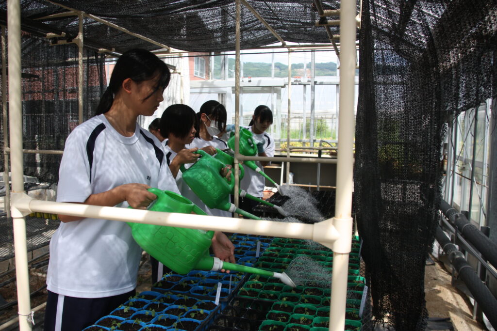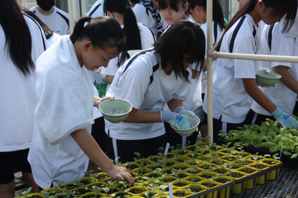 1年普通科「楽しい農業」の授業では、2学期から新しい花と野菜の栽培を準備しています。