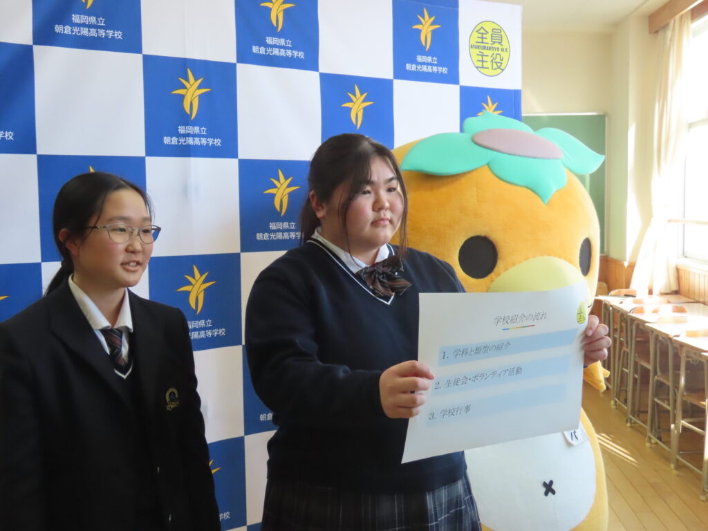 交流会では、生徒代表として生徒会会長が挨拶し、募金活動に込めた思いを能登高等学校の皆様へ伝えました。そして、本校が平成29年九州北部豪雨災害で被災した経験を踏まえ、募金活動を通して「地域の多くの方々が被災地を想っていることを実感した」こと、そして「その想いを能登高校の皆さんに直接届けたい」ことが語られました。