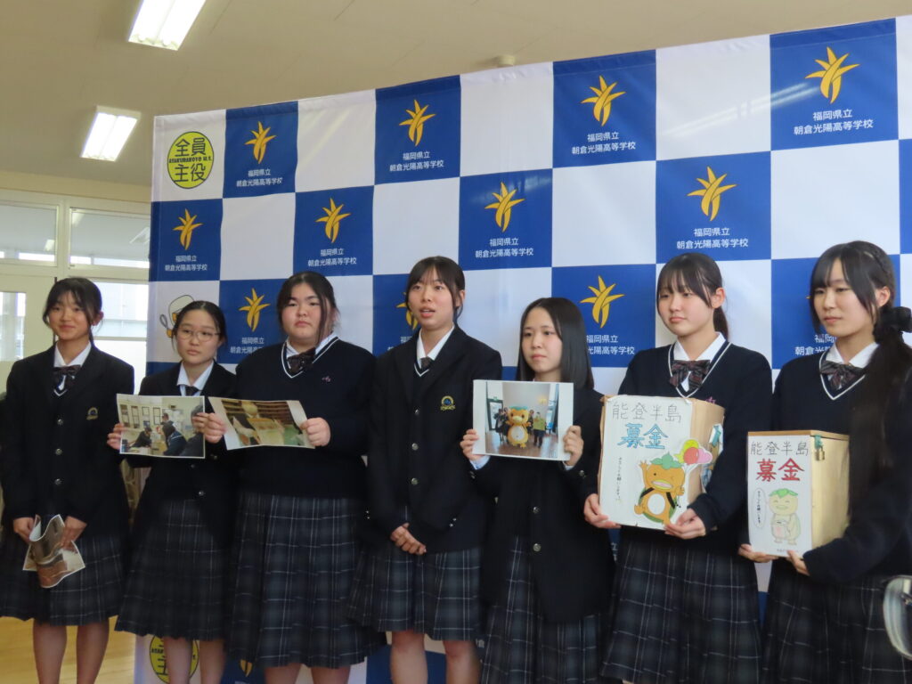 本校は、平成29年九州北部豪雨の被災にさいし、宮城県の高校から義援金をいただいた経緯があります。その時に受けた厚意を、今度は私たちが次につなげる番となり「恩送り」として実現しました。