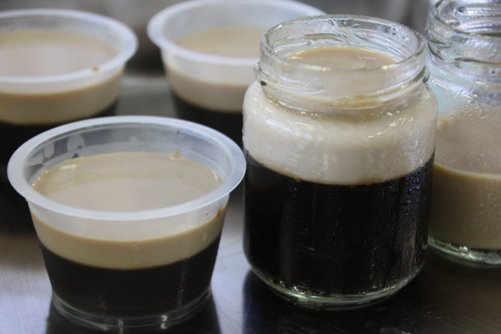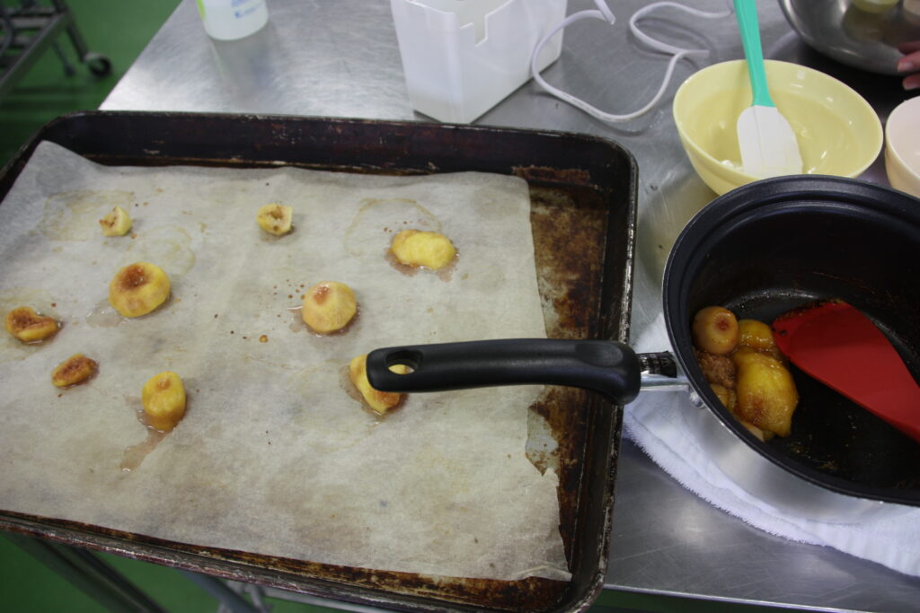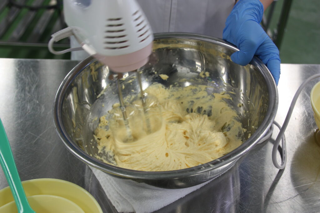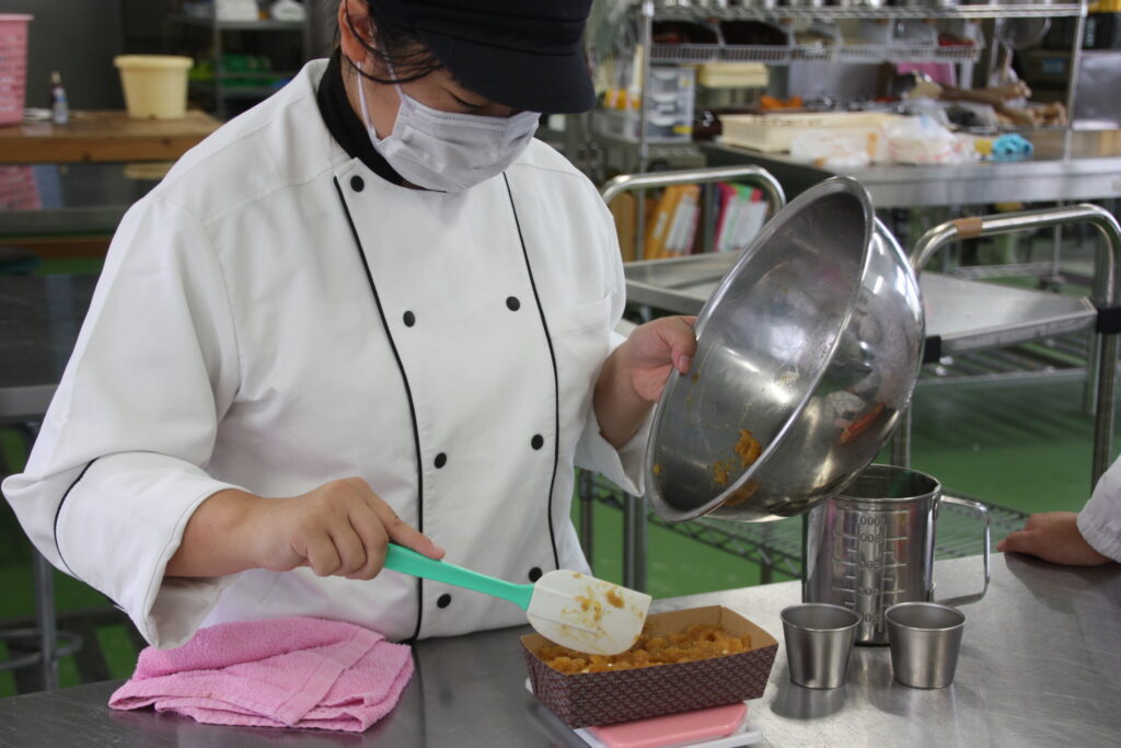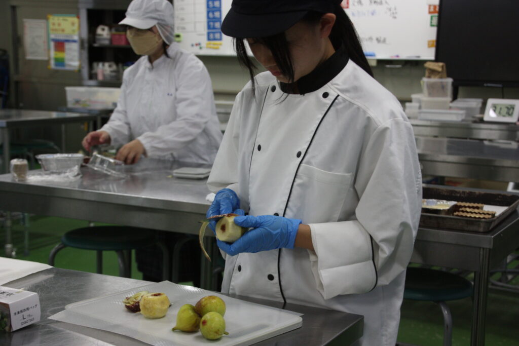 令和7年8~9月の部活動では、コーヒーゼリー、ティラミス、イチジクのパウンドケーキ製造を行いました。イチジクは学校で栽培しているものを使用した新商品で、食べやすいサイズになるように10月の販売に向けて試行錯誤しています。