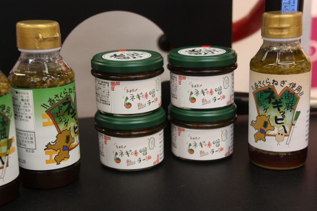 朝倉市の特産であるネギを使った3つの商品は、朝倉市の産学官連携により