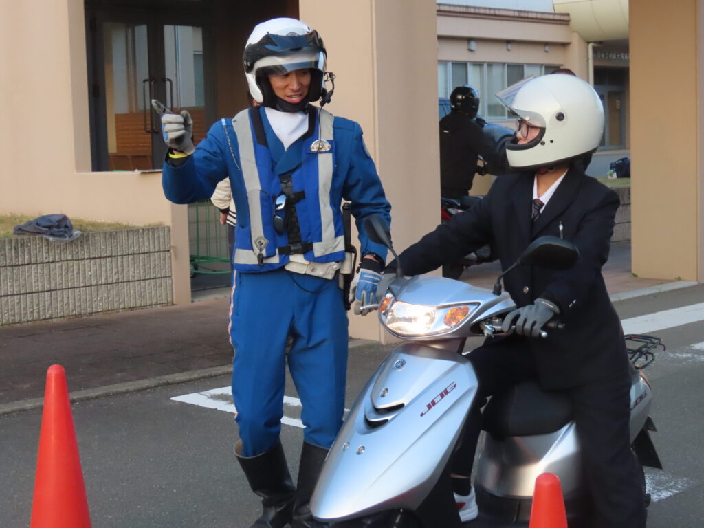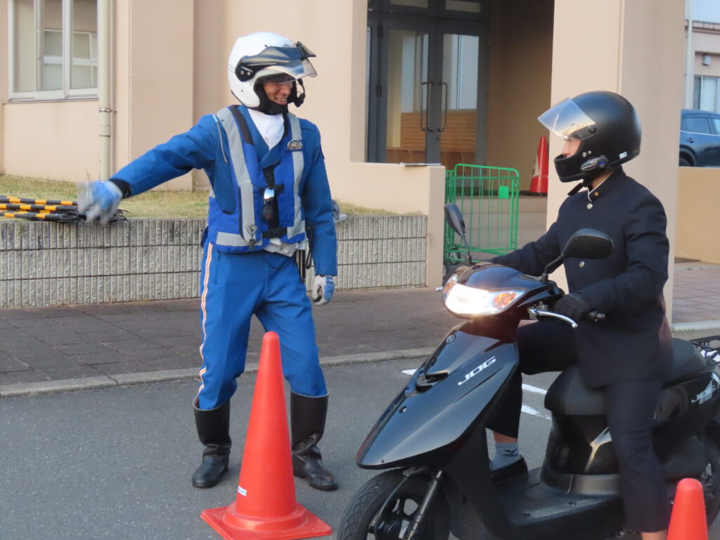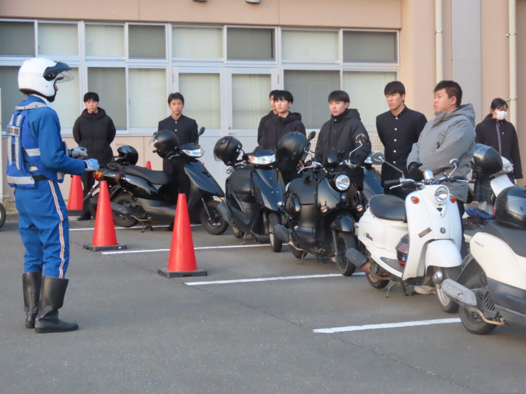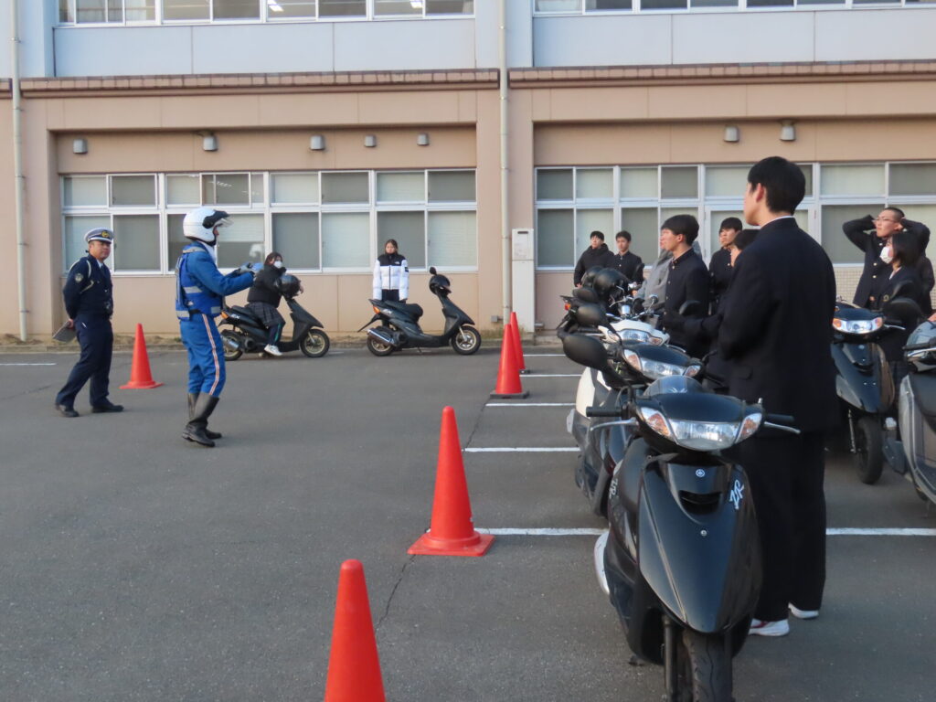 令和7年11月26日(水)、原付バイクで通学する生徒を対象に「原付バイク実技講習会」を実施しました。本講習会は、交通安全への意識を高め、交通法規の遵守や交通マナーの徹底を図ることを目的として毎年行っているものです。