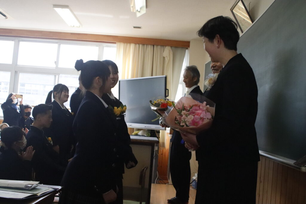 式典終了後、卒業生は担任の先導のもと、参列者の拍手に見送られながら体育館を後にしました。教室では最後のホームルームが行われ、担任や友人、保護者への感謝を告げ、その表情には達成感、新たな未来へ向かう決意が感じられました。