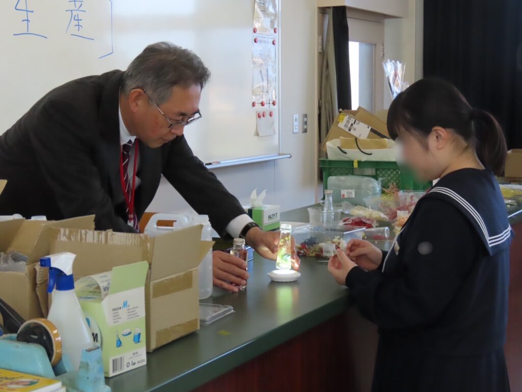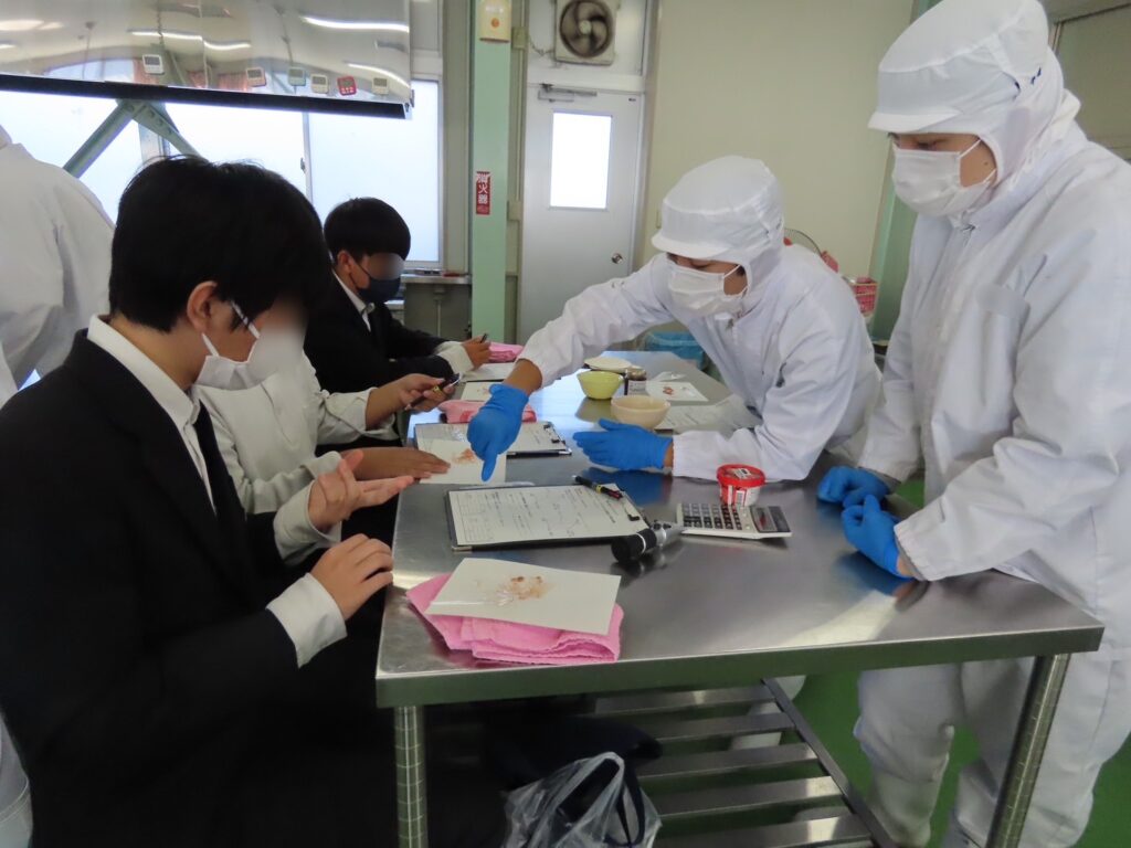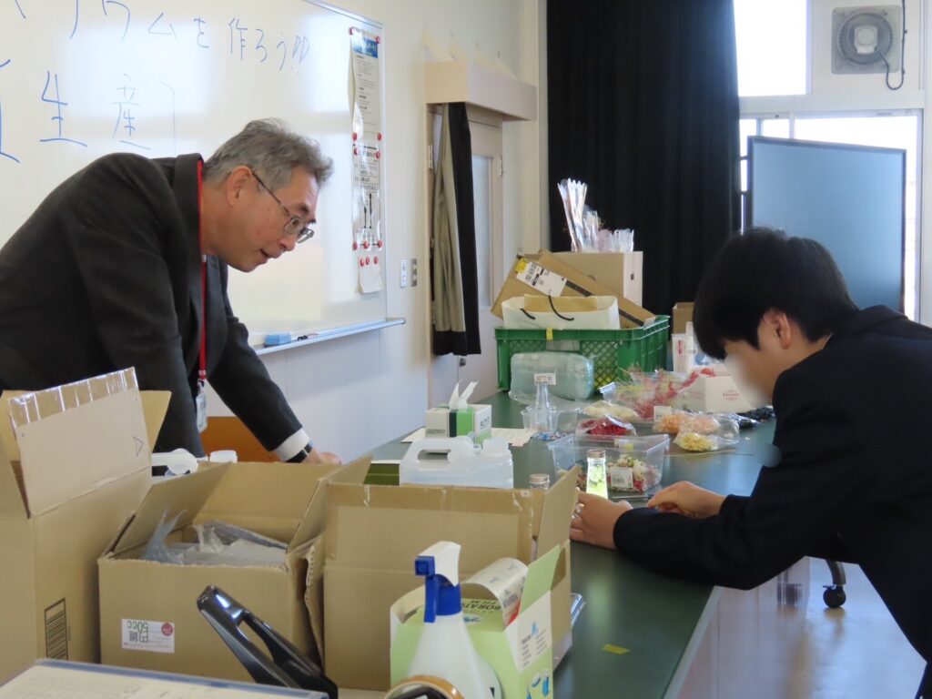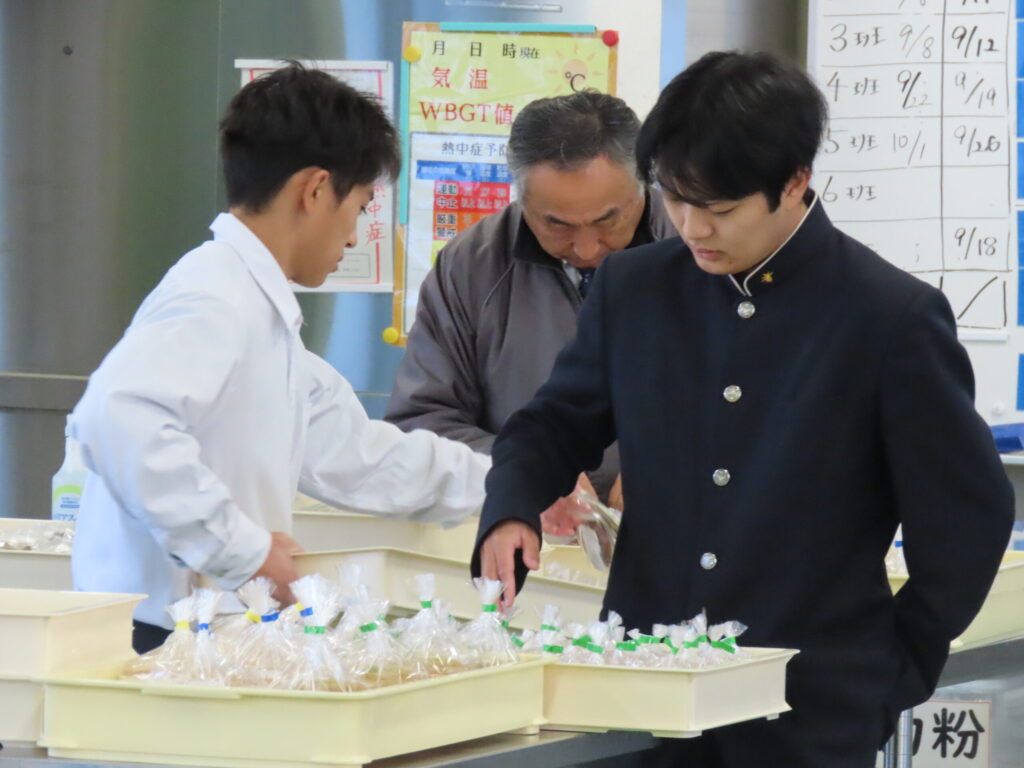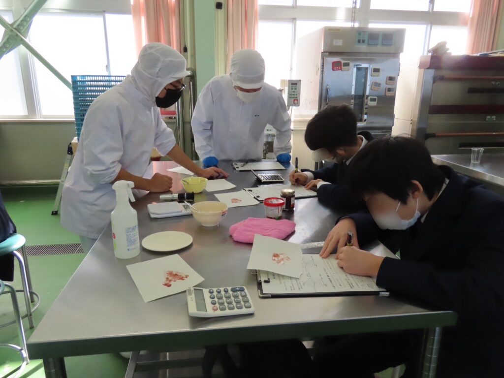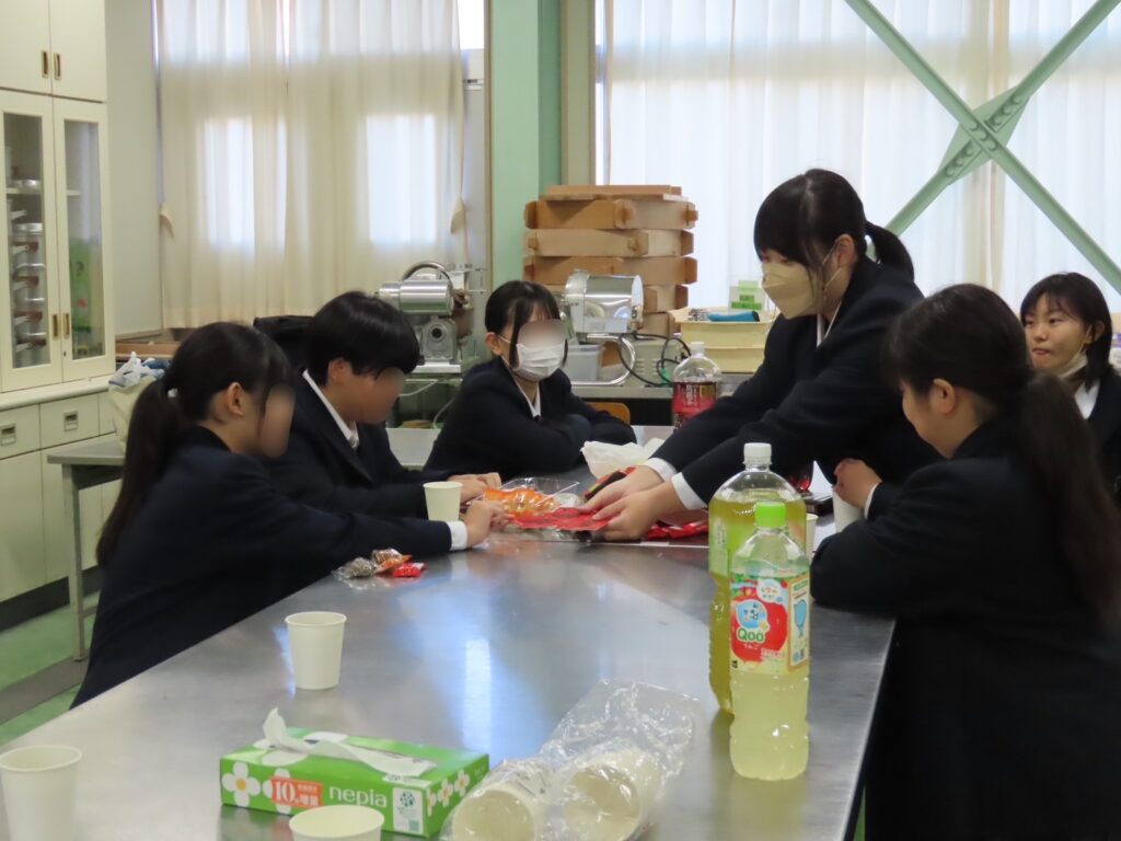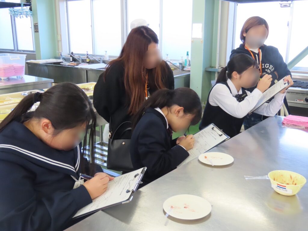 本校ならではの加工食品を使い、簡単な調理実習を行いました。香りに包まれながら、中学生は食品加工の基礎を楽しそうに体験していました。