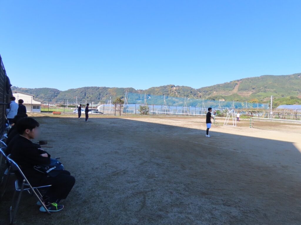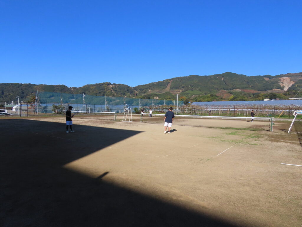 ソフトテニス部(テニスコートでスイングの基礎練習や実戦形式のラリー練習を実施)