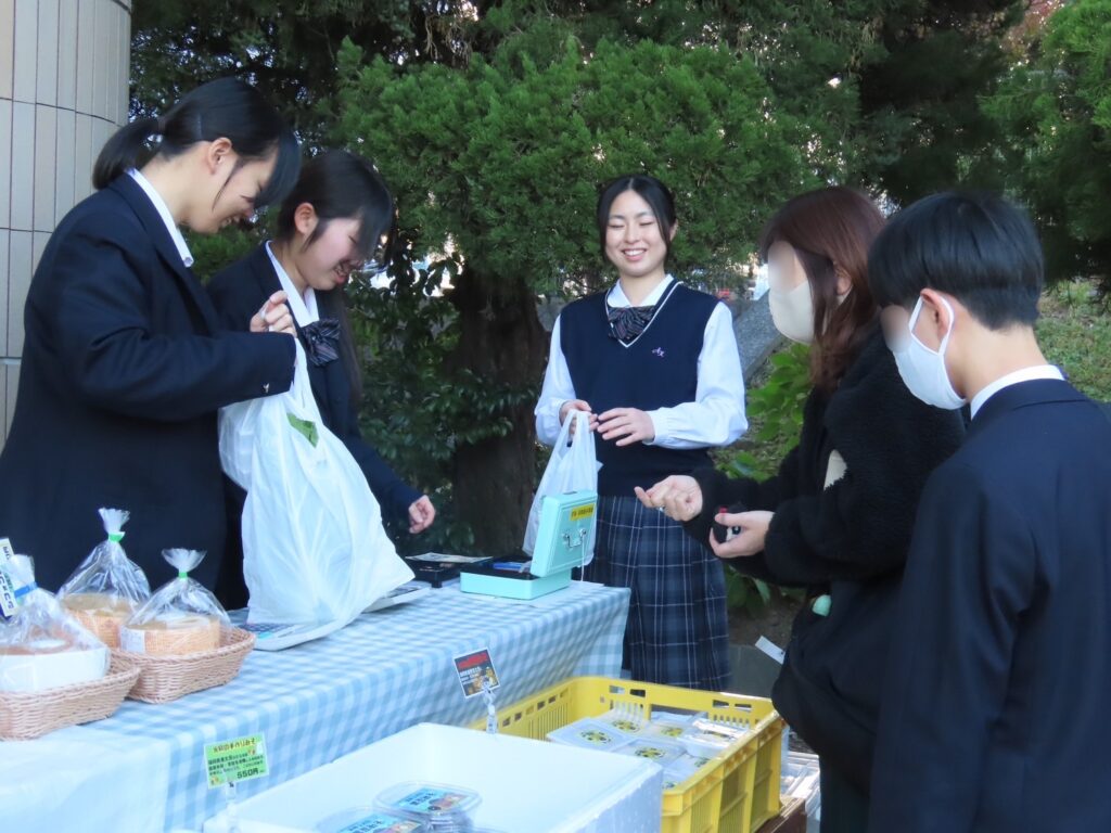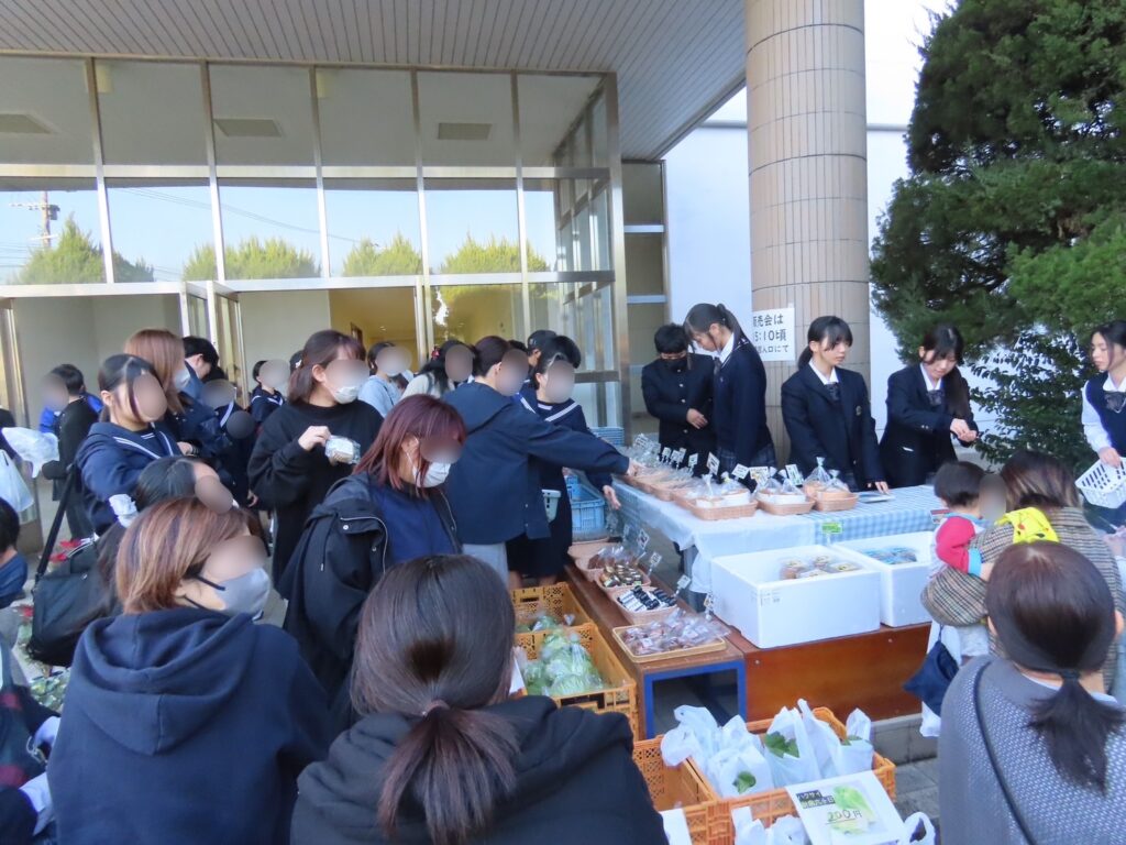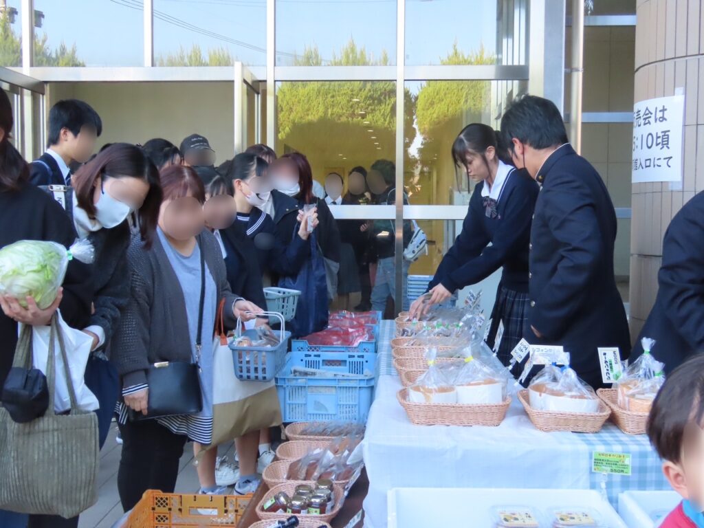 講座の後は、保護者の皆様は体育館でより詳細な学校説明と入試についての説明があり、中学生の皆さんはそれぞれの教室で質疑応答の時間が設けられました。最後に体育館で閉講式を行い、部活動相談会、学校についての個別相談、食農科学科による販売会を実施しました。新鮮な農産物や焼菓子などの加工品が並び、多くの皆さまにご購入いただきました。