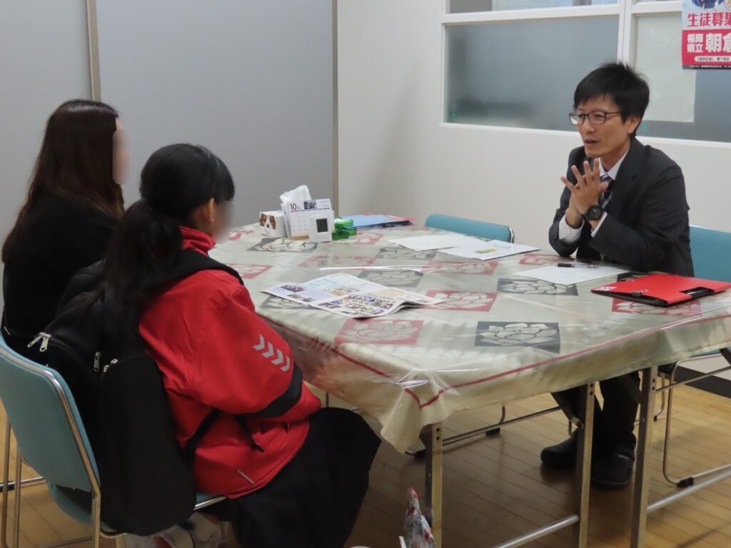体験後は、中学生が高校生と自由に交流する時間を設け、学校生活や勉強、部活動等について直接話を聞くことができました。保護者の皆さまには体育館で学校概要と入試説明を実施し、その後は希望者を対象に個別相談も行いました。