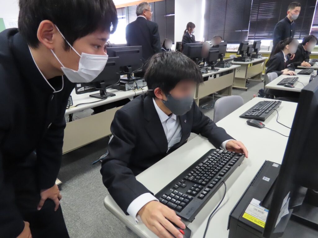 表計算ソフトや簡単なデザイン作成を体感し、情報処理の基礎を学びました。本校で学ぶ、就職に直結するビジネススキルについて紹介しました。