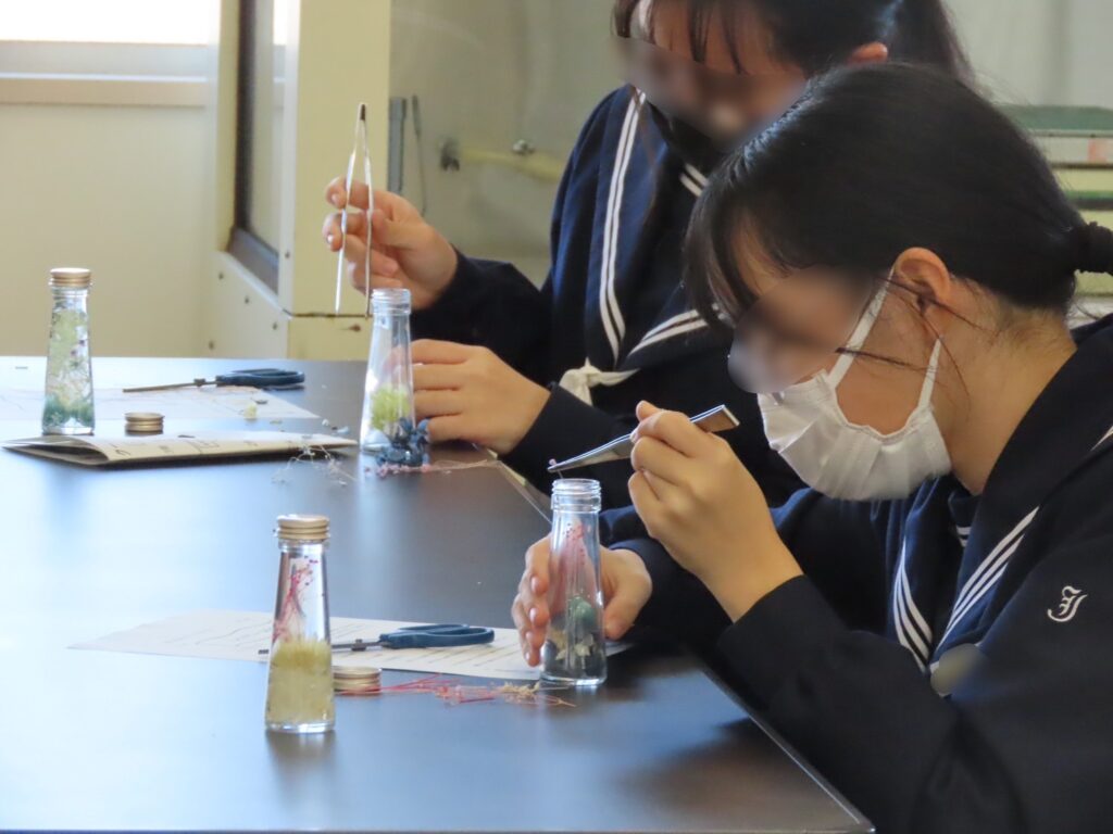 植物標本を使いながら、自分の好きな色や素材を組み合わせてハーバリウムを制作。理科的要素と創作の楽しさが融合した講座となりました。