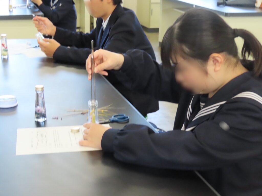 続いて実施された体験講座では、本校の特色ある実習を実際に体験しました。どの講座でも中学生が集中して取り組む姿が見られ、学びの楽しさを肌で感じていただけたようです。