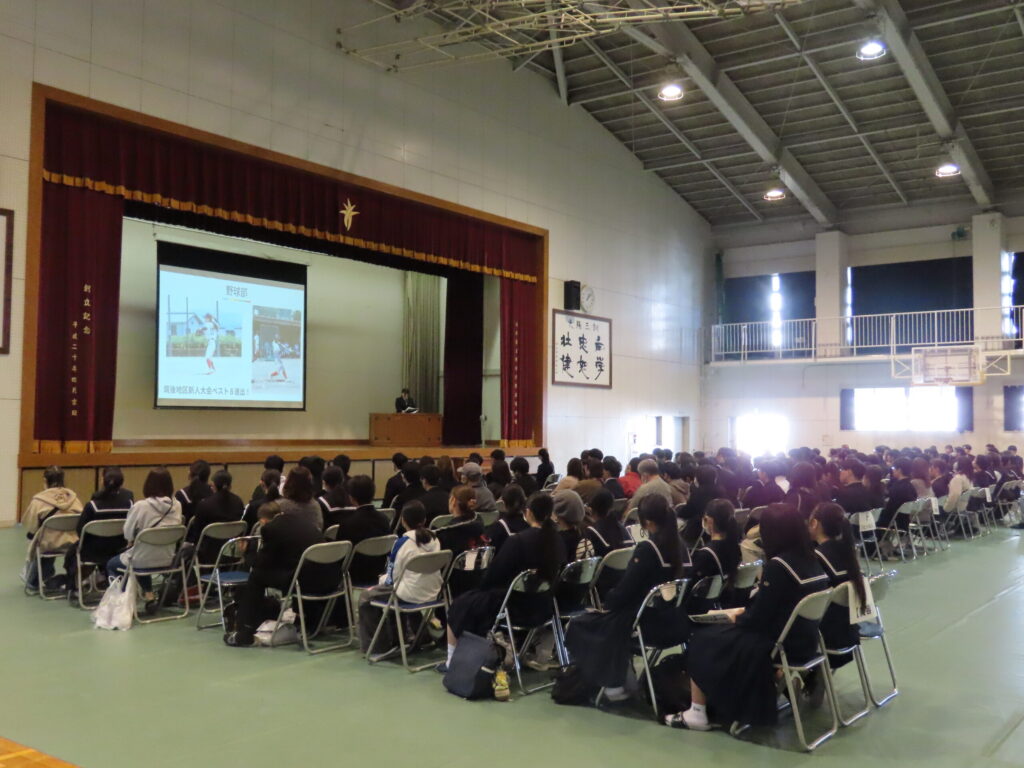 午前中は、活動時間・内容や部の雰囲気、大会実績、練習方針が等が紹介されました。