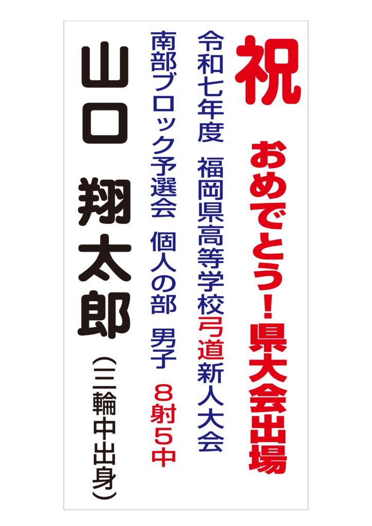 「南部大会で8射中5中し、県大会出場が決まりました。県大会では南部ブロックの代表として、また学校の代表として頑張ってきます。」
