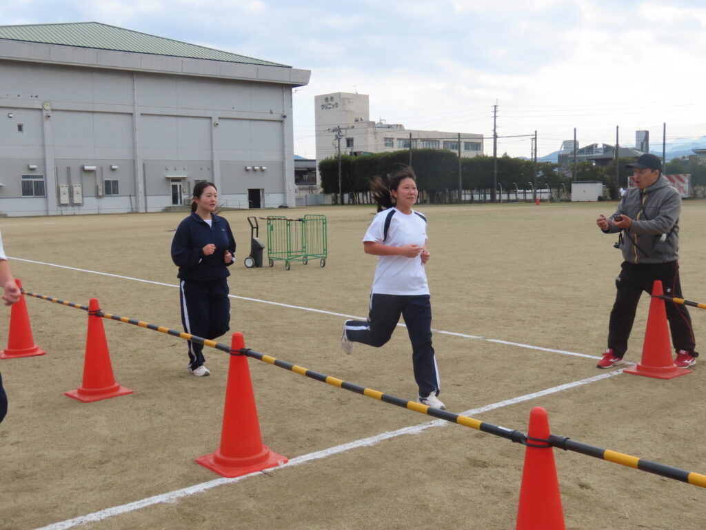 自分のペースを大切にしながら最後まで粘り強く走る生徒、友達と競い合いながら懸命に前へ進む生徒、そしてゴール直前で全力を振り絞り、本気の競争を繰り広げる姿など、それぞれが持久走に真剣に向き合う様子が随所で見られました。苦しさの中にも楽しさを感じながら走り切る姿からは、日頃の体育の授業や練習の成果が感じられました。