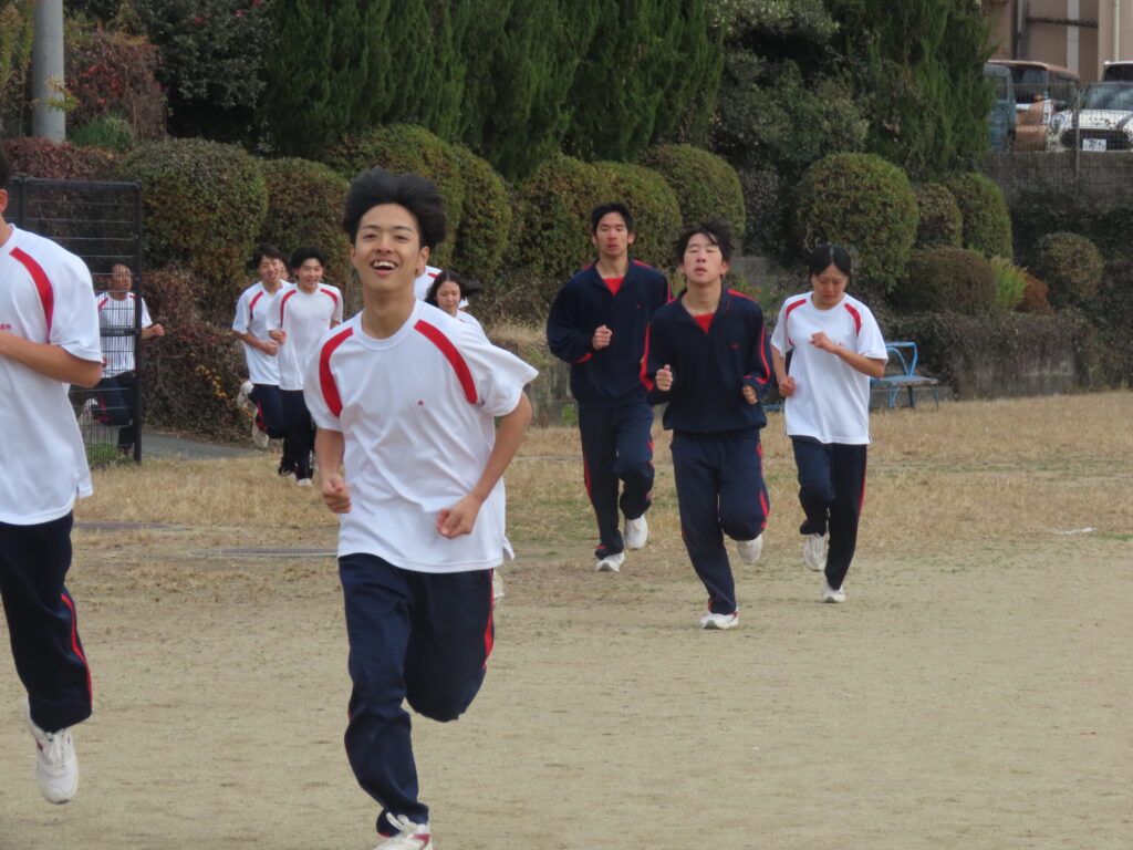 しかし、これまで大会に向けて練習を重ねてきた生徒たちの努力を発揮する場を設けるため、12月16日(火)に学年ごとに校内で持久走記録会を実施しました。