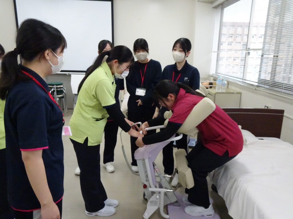 学生のサポートのもと、実際に介護ロボットや福祉用具の操作と体験をしました。今後、介護ロボットや福祉用具が、どのように自立支援や負担軽減につながるのか、実践的に考える機会となりました。