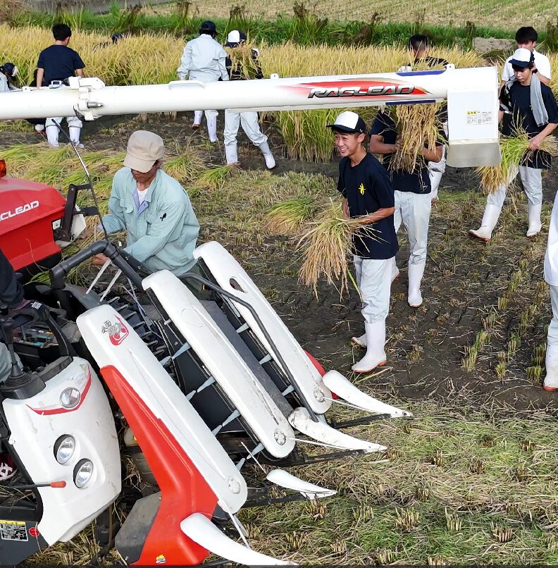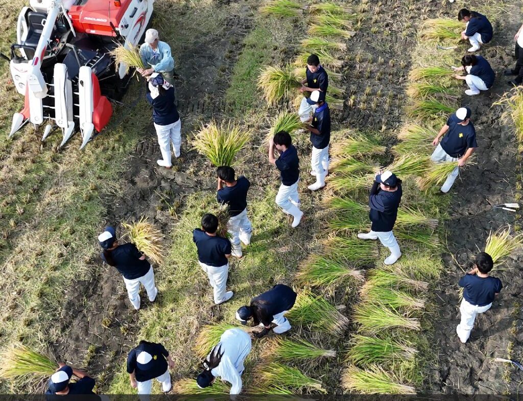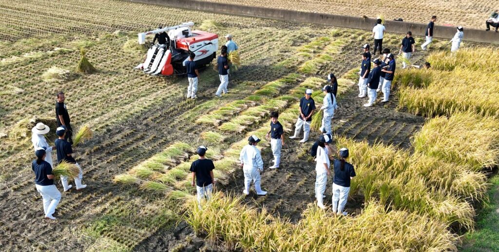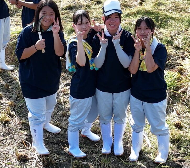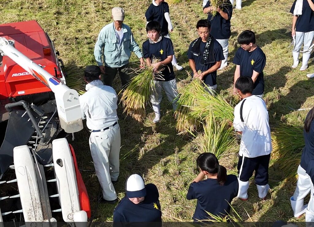 令和7年10月15日(水)食農科学科の1年生が『稲刈り』を行いました。天候にも恵まれ心地よい気候の中での実習となりました。