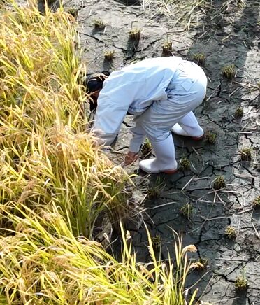 6月に田んぼに「ヒノヒカリ」を植え、これまで約5ヶ月間生育調査を行い、ついに収穫の時を迎えました。