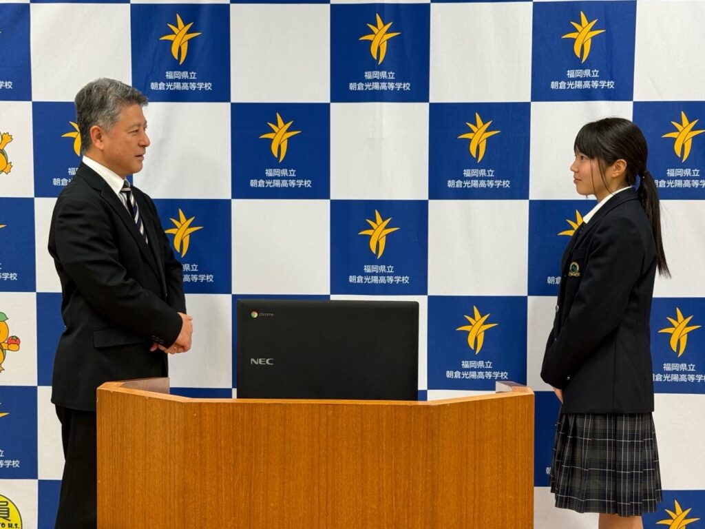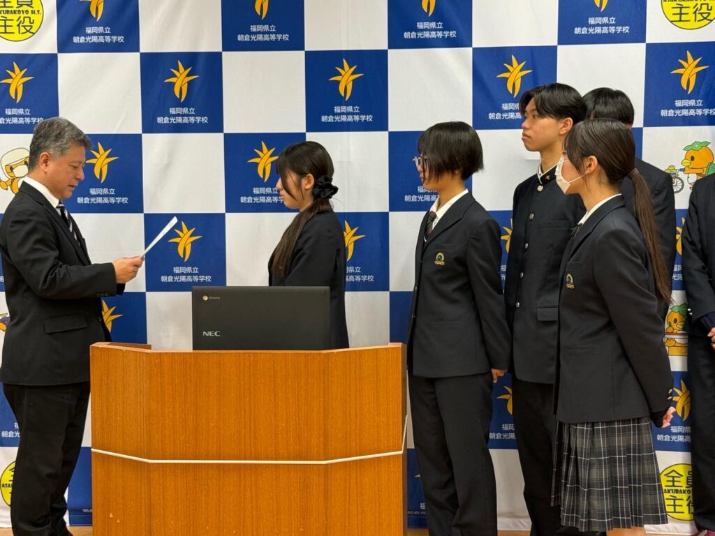 また、壮行会では3年生の合原莉愛さんが、福岡県高校女子野球選抜チームに選出され、オーストラリアに派遣されることが紹介されました。これまでの野球部での活動や活躍を評価され、選抜チームのキャプテンを務めることも決定しました。合原さんの今後のさらなる活躍を、学校全体で応援していきます。