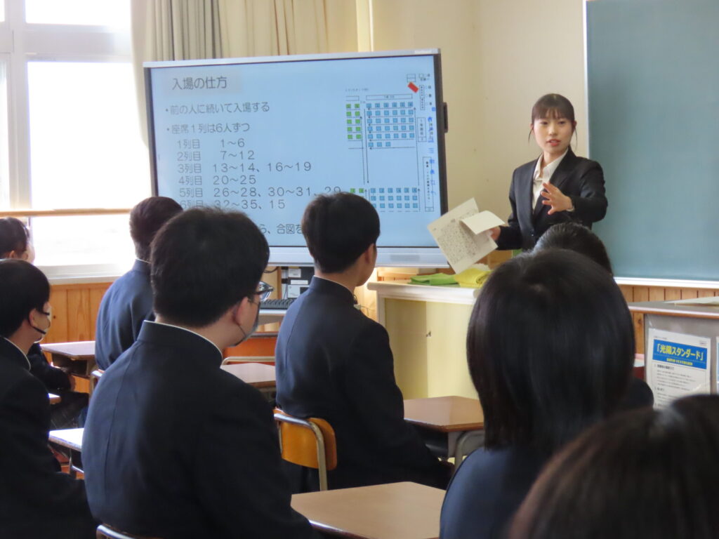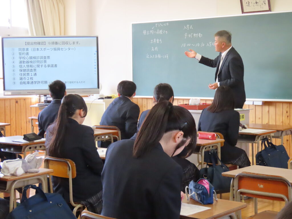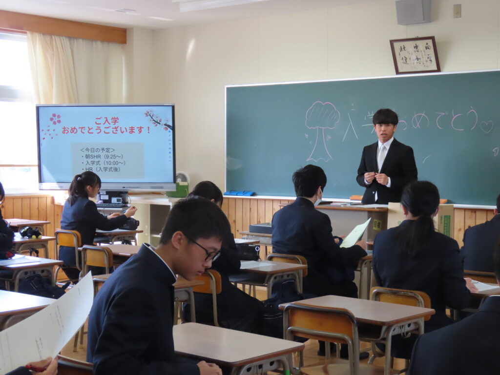 式終了後は各教室に移動し、担任から学校生活に関する説明や今後のクラス運営についての話がありました。新しい環境の中で、それぞれが少しずつ学校生活への理解を深める時間となりました。