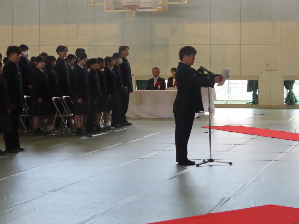 新入生代表の最上悠翔さんによる宣誓では、高校生活への意欲や決意が丁寧に述べられました。その姿から、これからの三年間への前向きな思いが感じられました。